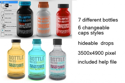 透明瓶子药品化妆品乳液瓶 MOCKUP PS智能贴图 样机 包装人 免费下载